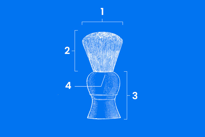 4- Nudo: Cuando hablamos del tamaño de una brocha de afeitar, no nos referimos a su altura o anchura, sino al diámetro del punto más bajo del penacho, expresado en milímetros. Esta información le indica el tamaño exacto de cada brocha de afeitar, sin tener en cuenta el tamaño o la altura del mango. En algunos casos, también se puede saber si el pelo es largo o corto.
